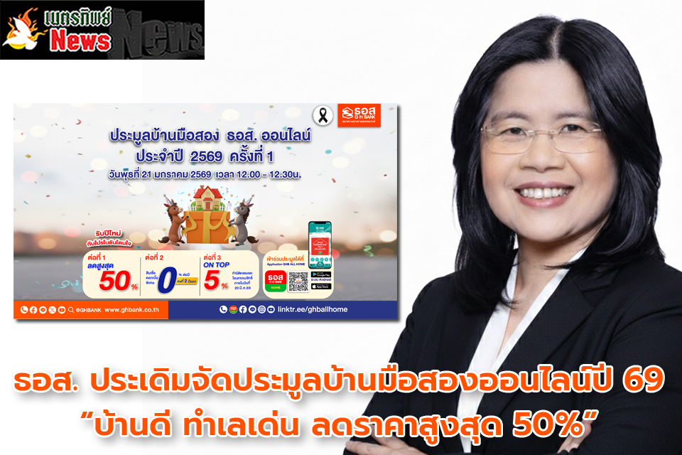 นางสาวอรนุช พงษ์ประยูร รองกรรมการผู้จัดการ กลุ่มงานปรับโครงสร้างหนี้ ธนาคารอาคารสงเคราะห์ (ธอส.) เปิดเผยว่า ธอส. พร้อมเดินหน้าสานต่อพันธกิจ “ทำให้คนไทยมีบ้าน” ผ่านช่องทางที่เข้าถึงได้อย่างสะดว กยิ่งขึ้นจัดงาน “ประมูลบ้านมือสอง ธอส. ออนไลน์ ประจำปี 2569 ครั้งที่ 1” ในวันพุธที่ 21 มกราคม 2569 ระหว่างเวลา 12.00 -12.30 น. ผ่าน Application : GHB ALL HOME โดยนำทรัพย์เด่น ทำเลดี ราคาคุ้มค่ากว่า 1,600 รายการทั่วประเทศ