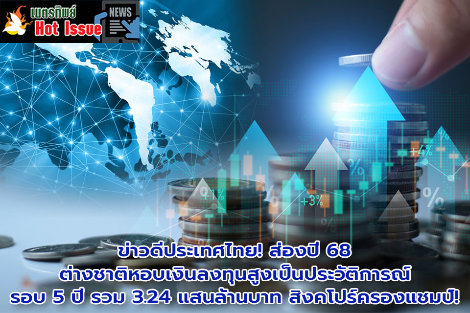 ชี้เพิ่มขึ้นจากปี 2567 ถึง 9.6 หมื่นล้านบาท หรือ 42% สิงคโปร์ ครองแชมป์ลงทุนอันดับหนึ่งทะลุ 1.03 แสนล้านบาท ตามด้วย ญี่ปุ่น 8.6 หมื่นล้านบาท และจีน 3.5 หมื่นล้านบาท