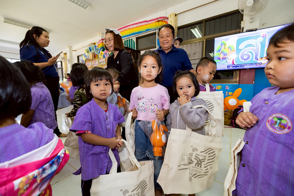 พร้อมกันนี้ได้เดินทางไปมอบอุปกรณ์การเรียน และกระปุกออมสิน ให้แก่ โรงเรียนตำรวจตระเวนชายแดนบ้านท่าแสนคูณ และศูนย์การเรียนรู้หนองบัวพัฒนา อีกด้วย