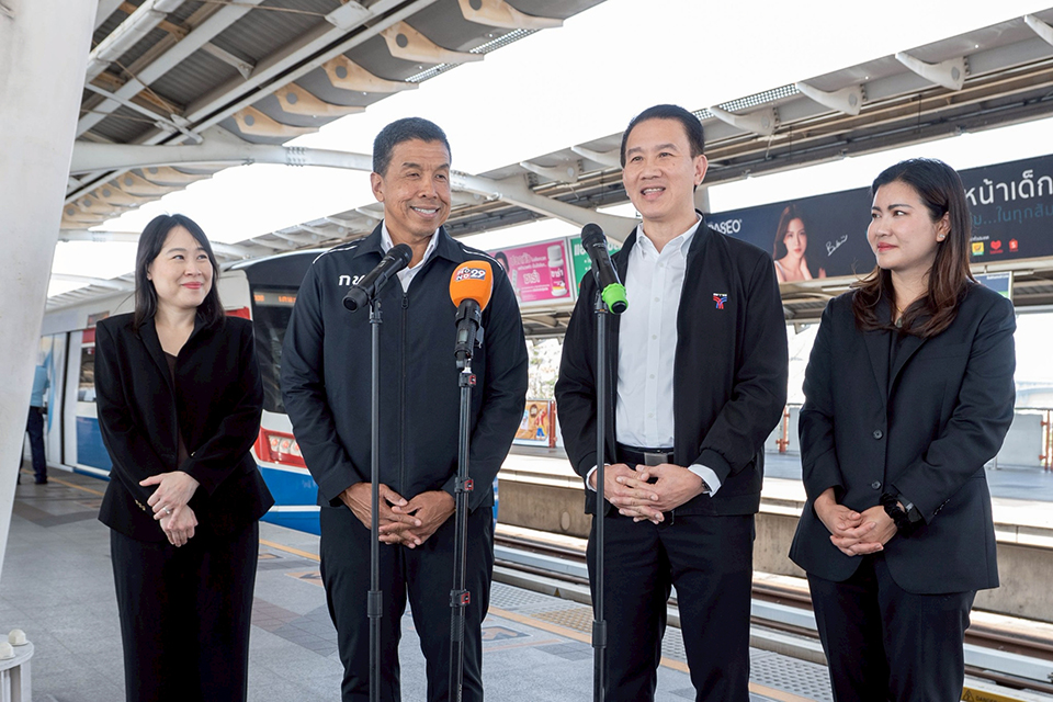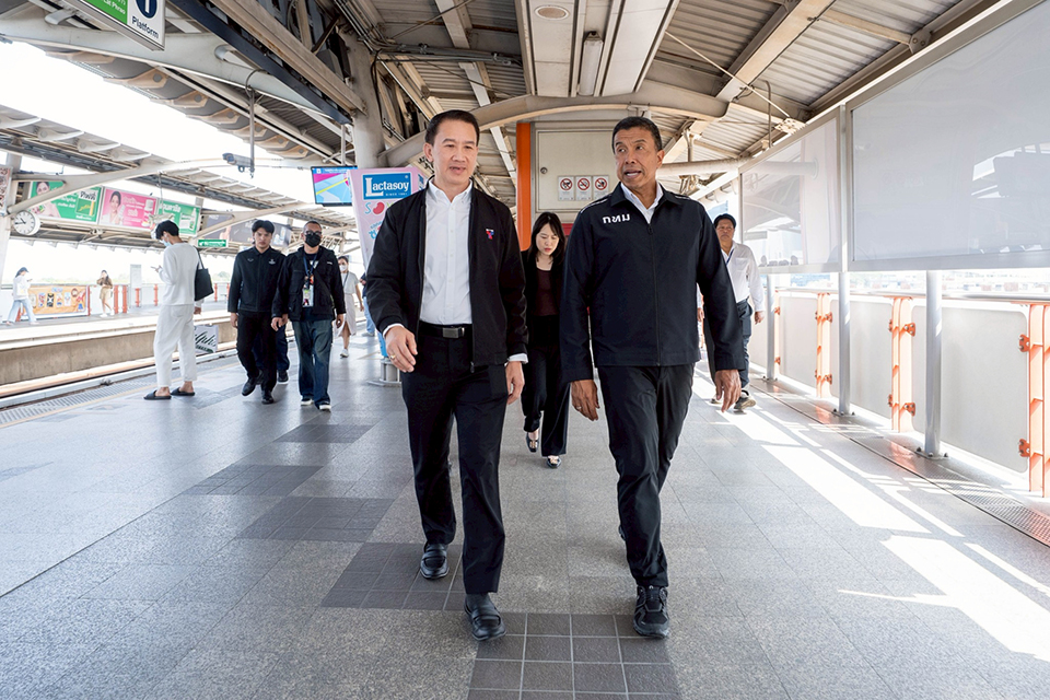 นายชัชชาติ สิทธิพันธุ์ ผู้ว่าราชการกรุงเทพมหานคร และ นายสุมิตร ศรีสันติธรรม กรรมการพัฒนาเพื่อความยั่งยืน บริษัท บีทีเอส กรุ๊ป โฮลดิ้งส์ จำกัด (มหาชน) หรือ บีทีเอส กรุ๊ปฯ พร้อมด้วยผู้บริหารจากบีทีเอส กรุ๊ปฯ นางสาวนริศรา ศรีสันต์ ที่ปรึกษา นางสาวสิณัฏฐา เกี่ยวข้อง ผู้อำนวยการฝ่ายนักลงทุนสัมพันธ์และฝ่ายพัฒนาเพื่อความยั่งยืน พร้อมด้วย นายพรพรหม ณ.ส. วิกิตเศรษฐ์ ที่ปรึกษาผู้ว่าราชการกรุงเทพมหานคร ร่วมสนับสนุนโครงการ Green List Plus “โปรสู้ฝุ่น ลด PM2.5” ณ สถานีรถไฟฟ้าบีทีเอสหมอชิต