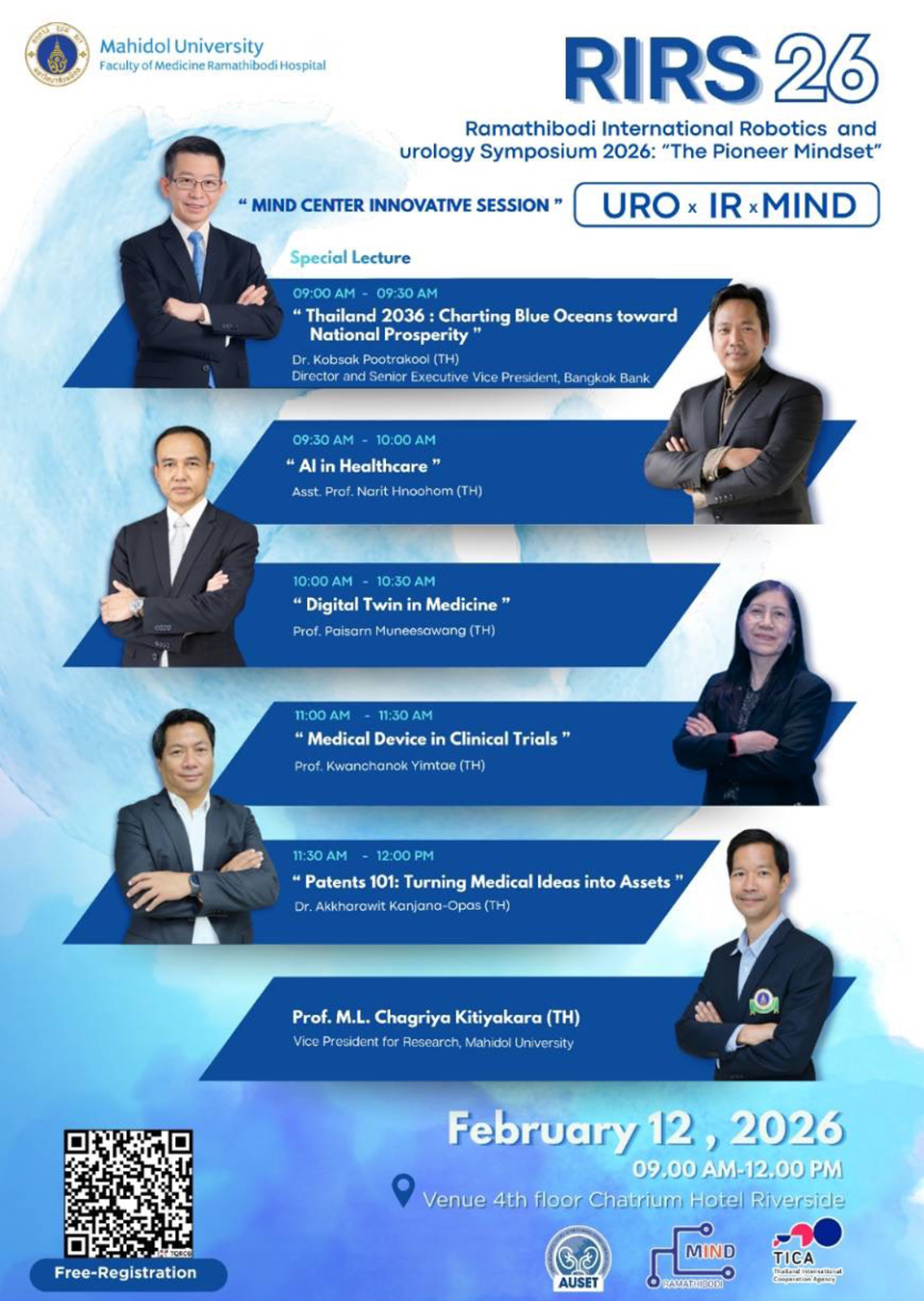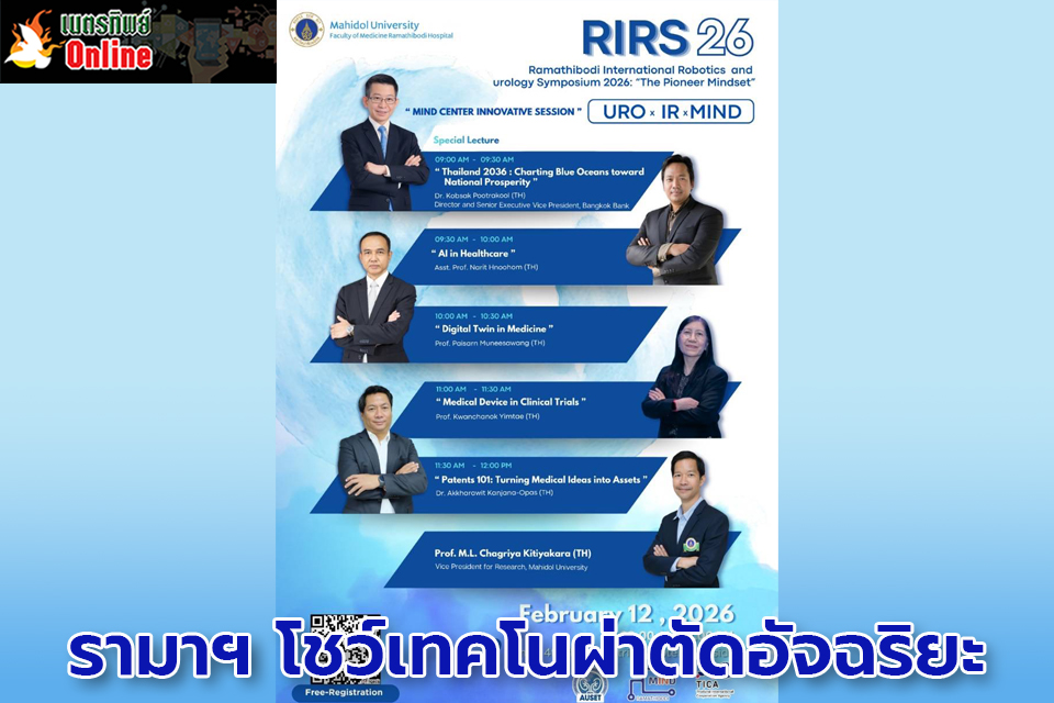 คณะแพทยศาสตร์ โรงพยาบาลรามาธิบดี มหาวิทยาลัยมหิดล ร่วมกับ The Asian Urological Society of Endoluminal & Technology จัดการประชุมสัมมนาวิชาการ Ramathibodi International Robotics and Urology Symposium (RIRS26) ภายใต้แนวคิด “Pioneer Mindset” ระหว่างวันที่ 12–13 กุมภาพันธ์ 2569 ณ โรงแรมชาเทรียม ริเวอร์ไซด์ กรุงเทพฯ