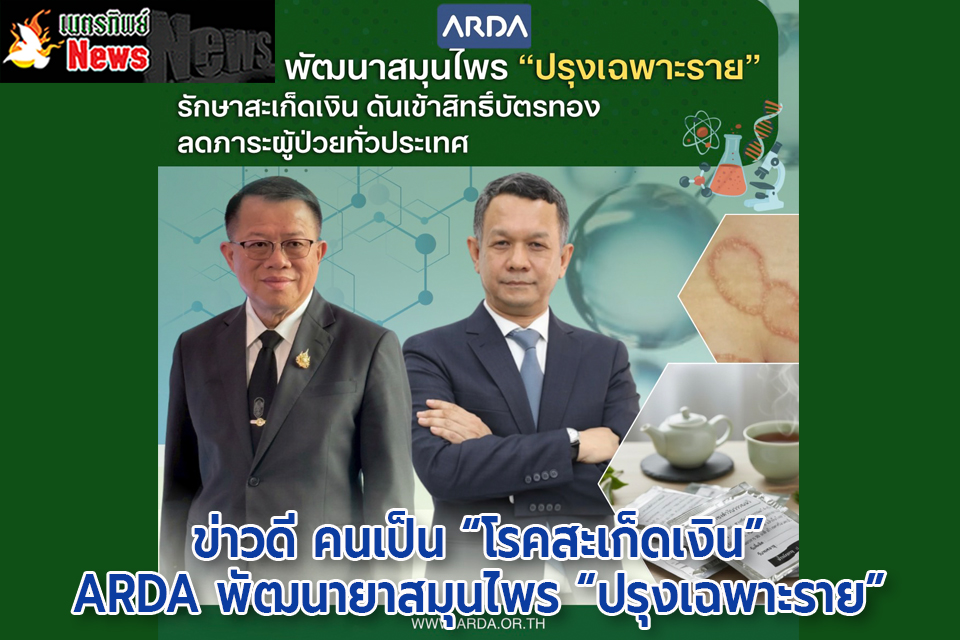 สำนักงานพัฒนาการวิจัยการเกษตร (องค์การมหาชน) หรือ ARDA จับมือกรมการแพทย์แผนไทยและการแพทย์ทางเลือก กระทรวงสาธารณสุข และหน่วยงานที่เกี่ยวข้อง พัฒนานวัตกรรม “ยาสมุนไพรปรุงเฉพาะรายรักษาโรคสะเก็ดเงิน” ที่ให้ผลลัพธ์ชัดเจน และถูกนำไปใช้จริงในสถานพยาบาลภาครัฐพร้อมเดินหน้าผลักดันเข้าสู่ระบบหลักประกันสุขภาพแห่งชาติ (บัตรทอง) เพิ่มทางเลือกการรักษาลดความเหลื่อมล้ำด้านสุขภาพและยกระดับคุณภาพชีวิตผู้ป่วยโรคเรื้อรังทั่วประเทศ นับเป็นทิศทางใหม่ของระบบสุขภาพไทย ที่เน้นการดูแลประชาชนแบบองค์รวม ลดภาระค่าใช้จ่ายระยะยาว และใช้ทรัพยากรทางการแพทย์อย่างคุ้มค่า