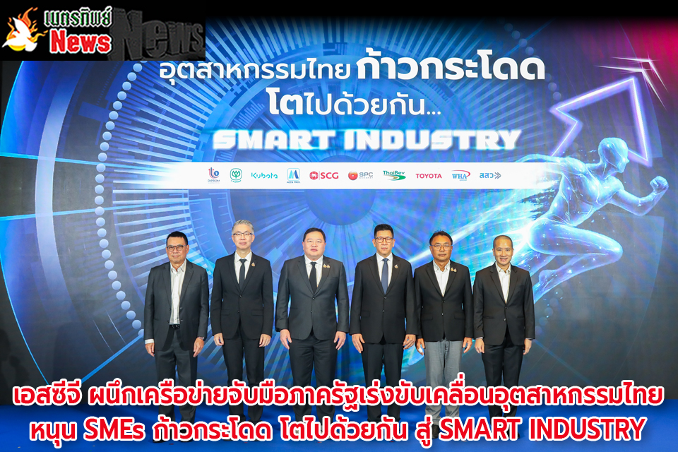 เอสซีจี จัดงาน “อุตสาหกรรมไทยก้าวกระโดด โตไปด้วยกัน...SMART INDUSTRY” ผนึกภาคเอกชนประสานภาครัฐเร่งขับเคลื่อนอุตสาหกรรมไทย สร้างกระบวนการทำงานใหม่ ร่วมเป็นส่วนหนึ่งของการแก้ปัญหา มุ่งเปลี่ยนสินค้าทุนนำเข้า 7.6 ล้านล้านบาทเป็นเศรษฐกิจภายในประเทศ สร้างรายได้ SMEs ชูกลยุทธ์ 5+1 พร้อมผลักดันสร้าง 3 ทุนประเทศ หวังProductivity และ GDP ไทยโตขึ้น 2 เท่า และสัดส่วน GDP ของ SMEs เพิ่มจาก 35% เป็น 50%