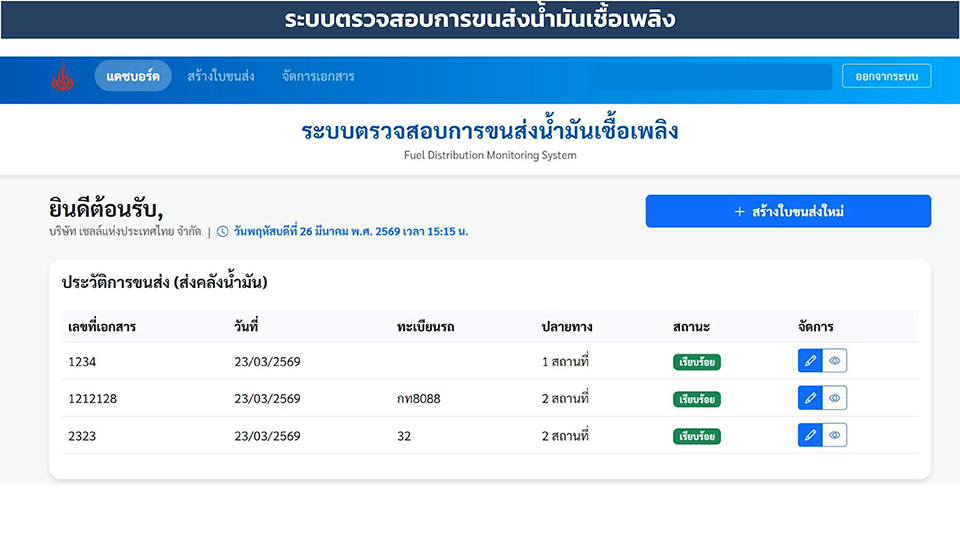 ทั้งนี้ กรมได้พัฒนาระบบตรวจสอบการขนส่งน้ำมันเชื้อเพลิง หรือ Fuel-DM (Fuel Distribution Monitoring) โดยทุกครั้งที่มีการขนส่งน้ำมันผู้ค้าน้ำมันต้องออกใบกำกับการขนส่ง และผู้ค้าน้ำมันต้องกรอกข้อมูลในระบบดังกล่าว โดยระบุคลังต้นทาง ไปปลายทาง ปริมาณเท่าใด ประเภทการขนส่ง นอกจากนั้นยังต้องแนบใบกำกับการขนส่งเข้าในระบบด้วย โดยขอข้อมูลย้อนหลังตั้งแต่ 1 กุมภาพันธ์ 2569 เป็นต้นมา เพื่อติดตามตรวจสอบการขนส่งน้ำมันถูกต้องเป็นไปตามกฎหมายหรือไม่