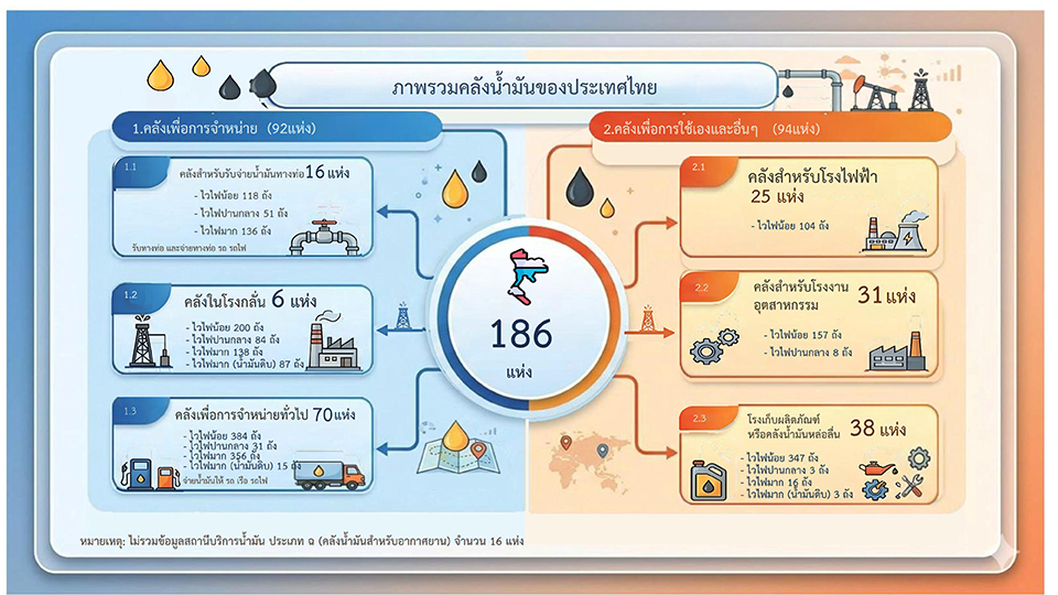 ผู้สื่อข่าวรายงานว่า เมื่อวันที่ 26 มีนาคม 2569 นายสราวุธ แก้วตาทิพย์ อธิบดีกรมธุรกิจพลังงาน (ธพ.) เปิดเผยว่า เส้นทางห่วงโซอุปทานน้ำมัน เริ่มต้นจากการจัดหาน้ำมันดิบจากตะวันออกไกล 11 เปอร์เซ็นต์ ตะวันออกกลาง 53 % ผลิตได้เองในประเทศ 9 เปอร์เซ็นต์ อื่นๆ จากสหรัฐอเมริกาแล้วก็เวสต์แอฟริกา รวมถึง ลาตินอเมริกา รวมทั้งสิ้น 27 % โดยน้ำมันดิบเข้ามาก็จะเป็นนําเข้าสู่โรงกลั่น แล้วกลั่นน้ำมันดีเซลพื้นฐานได้อยู่ที่ 78.286 ล้านลิตร เป็นดีเซลพื้นฐานที่ยังไม่ได้ผสมไบโอดีเซล (B0) จากน้ำมันดีเซลพื้นฐาน (B0) จะถูกจัดส่งมาที่เรียกว่าเป็นสต็อกถังเก็บน้ำมันพื้นฐานของในโรงกลั่นและผู้ค้าน้ำมันตามมาตรา 7 ซึ่งปัจจุบันนี้ในสต็อกถังเก็บน้ำมันดีเซลพื้นฐานอยู่ทั้งประเทศรวมกันทั้งสิ้น 854 ล้านลิตร ณ วันที่ 24 มีนาคม จากถังที่เก็บน้ำมันดีเซลพื้นฐาน จะมี 3 ส่วนด้วยกัน