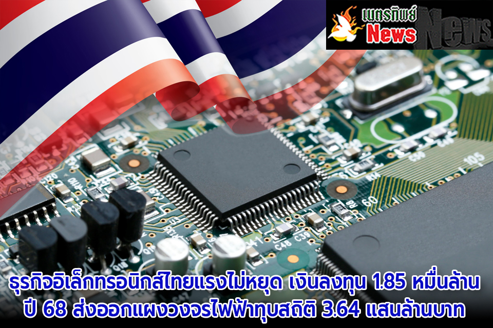 กรมพัฒนาธุรกิจการค้า วิเคราะห์อุตสาหกรรมการผลิตส่วนประกอบอิเล็กทรอนิกส์และแผงวงจรไฟฟ้าของไทย ยังคงเติบโตต่อเนื่องตามกระแสเศรษฐกิจดิจิทัลโลก ไทยครองอันดับ 1 สินค้าส่งออกของประเทศในกลุ่มอิเล็กทรอนิกส์ และเป็นฐานการผลิตอิเล็กทรอนิกส์ลำดับที่ 14 ของโลก ขณะที่ในช่วง 3 ปีที่ผ่านมา (2566 - 2568) มีธุรกิจจัดตั้งใหม่รวม 472 ราย เงินลงทุนกว่า 1.85 หมื่นล้านบาท สะท้อนความเชื่อมั่นของนักลงทุนต่อศักยภาพของไทยในการก้าวสู่ศูนย์กลางการผลิตอิเล็กทรอนิกส์ของภูมิภาค