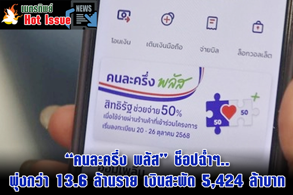 “คนละครึ่ง พลัส” ช็อปฉ่ำๆ.. พุ่งกว่า 13.6 ล้านราย เงินสะพัด 5,424 ล้าบาท