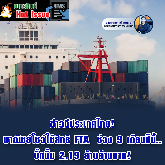 ข่าวดีประเทศไทย! พาณิชย์โชว์ใช้สิทธิ FTA ช่วง 9 เดือนปีนี้.. บิ๊กบึ้ม 2.19 ล้านล้านบาท!