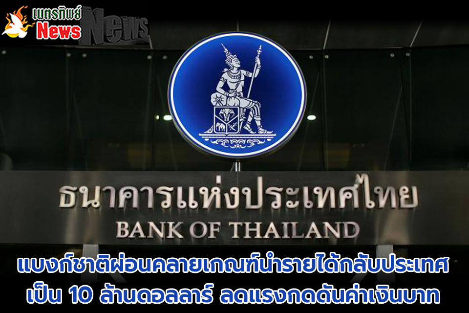 แบงก์ชาติผ่อนคลายเกณฑ์นำรายได้กลับประเทศ เป็น 10 ล้านดอลลาร์ ลดแรงกดดันค่าเงินบาท