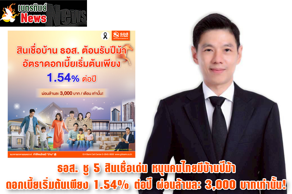 ธอส. ชู 5 สินเชื่อเด่น หนุนคนไทยมีบ้านปีม้า ดอกเบี้ยเริ่มต้นเพียง 1.54% ต่อปี ผ่อนล้านละ 3,000 บาทเท่านั้น!
