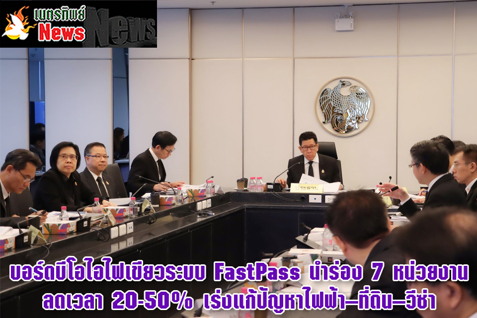 บอร์ดบีโอไอไฟเขียวระบบ FastPass นำร่อง 7 หน่วยงาน ลดเวลา 20-50% เร่งแก้ปัญหาไฟฟ้า–ที่ดิน–วีซ่า