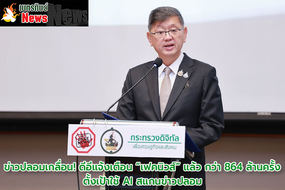 ข่าวปลอมเกลื่อน! ดีอีแจ้งเตือน “เฟคนิวส์” แล้ว กว่า 864 ล้านครั้ง ตั้งเป้าใช้ AI สแกนข่าวปลอม -
