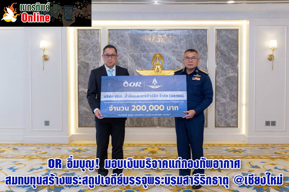 พลอากาศเอก พันธ์ภักดี พัฒนกุล ผู้บัญชาการทหารอากาศ ให้เกียรติรับมอบเงินบริจาค จาก หม่อมหลวงปีกทอง ทองใหญ่ ประธานเจ้าหน้าที่บริหาร บริษัท ปตท. น้ำมันและการค้าปลีก จำกัด (มหาชน) หรือ OR เพื่อสมทบทุนโครงการสร้างพระสถูปเจดีย์บรรจุพระบรมสารีริกธาตุ องค์ที่ 3 ณ อุทยานแห่งชาติดอยอินทนนท์ จ.เชียงใหม่ โดยมี นายไพศาล อุดมกุลวณิชย์ รองประธานเจ้าหน้าที่บริหารด้านธุรกิจเอนเนอร์ยี่โซลูชัน และ นายทรงพล เทพนำโสมนัสส์ รองประธานเจ้าหน้าที่บริหารด้านธุรกิจต่างประเทศ OR ร่วมในพิธี ณ ห้องรับรองบริพัตร กองบัญชาการกองทัพอากาศ