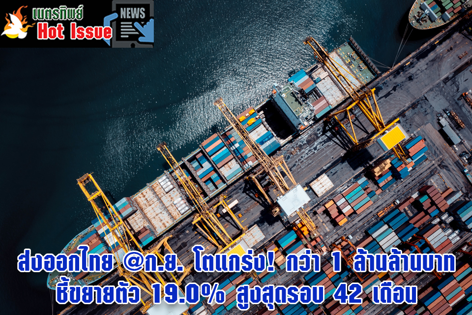 เผยมูลค่าส่งออกเดือน ก.ย. ฟื้นตัวแข็งแกร่งเกินคาด ขยายตัว 19.0% สูงสุดในรอบ 42 เดือน จากอุปสงค์สินค้าอุตสาหกรรมที่เติบโตต่อเนื่อง ท่ามกลางแรงกดดันทางการค้าโลก