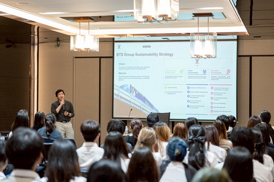 เมื่อวันที่ 28 ตุลาคม 2568 บริษัท บีทีเอส กรุ๊ป โฮลดิ้งส์ จำกัด (มหาชน) หรือ บีทีเอส กรุ๊ปฯ นำโดย นางสาวนริศรา ศรีสันต์ ที่ปรึกษา, นางสาวสิณัฏฐา เกี่ยวข้อง ผู้อำนวยการฝ่ายนักลงทุนสัมพันธ์ และผู้อำนวยการฝ่ายพัฒนาเพื่อความยั่งยืน, นายตฤป ลีกุลพิทักษ์ ผู้อำนวยการฝ่ายบริหารทรัพยากรบุคคล และ ดร.นลินรัตน์ มาสมบูรณ์ ผู้ช่วยผู้อำนวยการฝ่ายพัฒนาเพื่อความยั่งยืน พร้อมด้วยเจ้าหน้าที่ ให้การต้อนรับ คณะอาจารย์ และนักศึกษา คณะบริหารธุรกิจและนิเทศศาสตร์ สาขาวิชาการจัดการารสื่อสาร มหาวิทยาลัยพะเยา จำนวน 69 คน ในการเข้ามาเยี่ยมชม และศึกษาการดำเนินงานของบีทีเอส กรุ๊ปฯ เพื่อสร้างความเข้าใจในกระบวนการทำงานด้านการสื่อสารจากผู้ปฏิบัติงานจริง และสร้างแรงบันดาลใจในการประกอบอาชีพหลังจากจบการศึกษา ผ่านการรับฟังบรรยาย จากผู้บริหารของบีทีเอส กรุ๊ปฯ ในหัวข้อ “กระบวนการสื่อสาร และกระบวนการปฏิบัติงาน ด้านการสื่อสารองค์กร และความยั่งยืน”