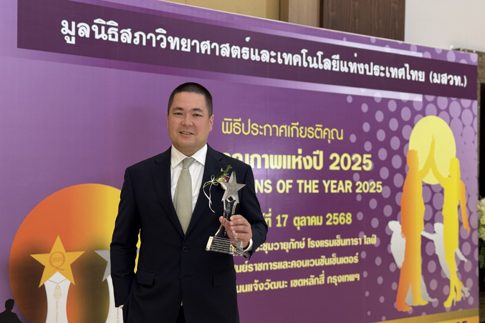 นายสมิทธิพร เศรษฐปราโมทย์ ประธานเจ้าหน้าที่บริหาร บริษัท บ้านปู เน็กซ์ จำกัด รับรางวัล “บุคคลตัวอย่างในภาคธุรกิจพลังงานและสาธารณูปโภค” ภายใต้โครงการ “บุคคลคุณภาพแห่งปี 2025” จากมูลนิธิสภาวิทยาศาสตร์และเทคโนโลยีแห่งประเทศไทย (มสวท.) ในฐานะผู้นำที่เป็นแบบอย่างในการขับเคลื่อนธุรกิจพลังงานสะอาด พร้อมสนับสนุนภาคธุรกิจไทยก้าวสู่เป้าหมาย Net Zero
