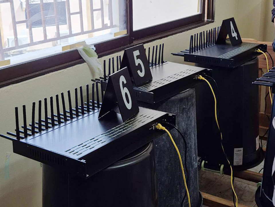 นอกจากนี้ สัปดาห์ที่ผ่านมา สำนักงาน กสทช. ยังได้ให้ข้อมูลแก่ศูนย์ปราบปรามอาชญากรรมและเทคโนโลยีสารสนเทศ (ศปอส.ตร) ซึ่งทำงานร่วมกันระหว่างเจ้าหน้าที่ตำรวจและหน่วยงานที่เกี่ยวข้อง หลังจากพบเบาะแสความผิดปกติการใช้สัญญาณโทรศัพท์มือถือและอินเทอร์เน็ตในบริเวณพื้นที่ อ.เมืองบึงกาฬ จ.บึงกาฬ โดยกองบังคับการสืบสวนสอบสวนตำรวจภูธรภาค 4 และกองบังคับการตำรวจสืบสวนสอบสวน อาชญากรรมทางเทคโนโลยี 2 ได้ตรวจสอบพบบ้านหลังหนึ่ง ในจังหวัดบึงกาฬ มีการใช้สัญญาณโทรศัพท์มือถือและอินเทอร์เน็ตผิดปกติ โดยได้นำหมายค้นศาลจังหวัดบึงกาฬเข้าตรวจค้นบ้านหลังหนึ่ง อ.เมืองบึงกาฬ จ.บึงกาฬ ผลการตรวจค้น พบของกลางเป็นอุปกรณ์ต่าง ๆ ที่ใช้ในการกระทำความผิดของกระบวนการของแก๊งคอลเซ็นเตอร์ เช่น เครื่องแปลงสัญญาณโทรศัพท์แบบใส่ซิมการ์ด (Sim box) 32 พอต จำนวน 4 เครื่อง เครื่องขยายโทรศัพท์มือถือ (Mobile Signal Booster) จำนวน 1 เครื่อง เครื่องกระจายสัญญาณอินเตอร์เน็ตแบบไร้สาย จำนวน 1 เครื่อง เสาอากาศแบบโดม (Ceiling Dome Antenna) 1 เครื่อง และเสาอากาศทิศทาง (Directional Antenna) 1 เครื่อง เป็นต้น จึงได้ทำการตรวจยึดของกลางดังกล่าว และส่งพนักงานสอบสวน สภ.เมืองบึงกาฬ เพื่อดำเนินการตามขั้นตอนของกฎหมายต่อไป