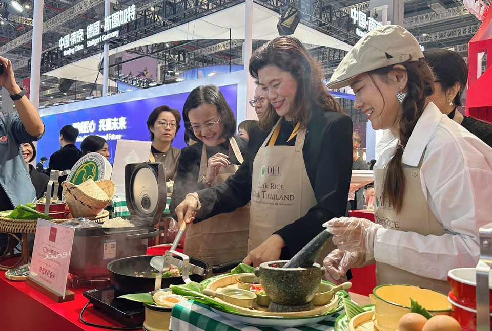 อธิบดีกรมการค้าต่างประเทศ เปิดเผยเพิ่มเติมว่า การดำเนินกิจกรรมดังกล่าวสอดรับกับนโยบายของ รมว.พณ. ที่เน้นการเพิ่มมูลค่าการส่งออก โดยการรักษาตลาดข้าวเดิมอย่างจีน ฮ่องกง และญี่ปุ่น โดยจีนเป็นตลาดส่งออกที่สำคัญของข้าวไทยมาโดยตลอด แต่ละปีไทยส่งออกข้าวไปจีนประมาณ 440,000 – 750,000 ตัน/ปี ครองส่วนแบ่งการนำเข้าข้าวของจีน ร้อยละ 23 รองจากเมียนมา และเวียดนาม สำหรับปี 2568 (ม.ค. - ก.ย.) ไทยส่งออกข้าวไปจีนปริมาณ 523,518 ตัน เพิ่มขึ้นจากช่วงเดียวกันของปี 2567 ที่ส่งออกปริมาณ 210,201 ตัน หรือเพิ่มขึ้นร้อยละ 149.06 โดยส่วนใหญ่เป็นข้าวขาว (ร้อยละ 74) รองลงมา คือข้าวเหนียว (ร้อยละ 18) และข้าวหอมมะลิไทย (ร้อยละ 5) ที่เหลือเป็นข้าวหอมไทย ข้าวนึ่ง และข้าวกล้อง ดังนั้น การเข้าร่วมงาน CIIE จะเป็นอีกช่องทางหนึ่งในการช่วยกระตุ้นความต้องการข้าวไทย และรักษาส่วนแบ่งตลาดข้าวไทยในจีนต่อไป