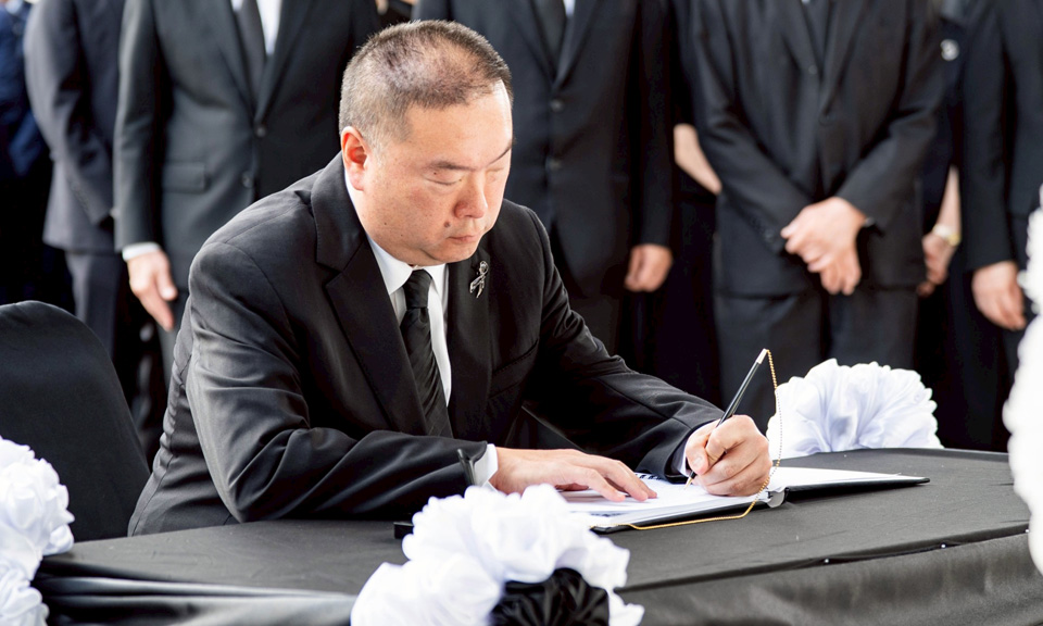 โดยในพิธีดังกล่าว ประธานในพิธีได้ถวายสักการะ และวางพานพุ่ม เบื้องหน้าพระฉายาลักษณ์ จากนั้นได้นำกล่าวถวายความอาลัย และนำผู้เข้าร่วมพิธีร่วมยืนสงบนิ่งเป็นเวลา 93 วินาที เพื่อน้อมรำลึกในพระมหากรุณาธิคุณอันหาที่สุดมิได้ พร้อมตั้งจิตอธิษฐานให้ดวงพระวิญญาณของพระองค์ท่านเสด็จสู่สวรรคาลัย ภายหลังเสร็จสิ้นการกล่าวถวายความอาลัย ประธานในพิธี คณะกรรมการ ผู้บริหาร และพนักงาน ได้ร่วมกันลงนามถวายความอาลัย เพื่อแสดงความจงรักภักดี และน้อมสำนึกในพระมหากรุณาธิคุณของพระองค์ท่านเป็นลำดับสุดท้าย