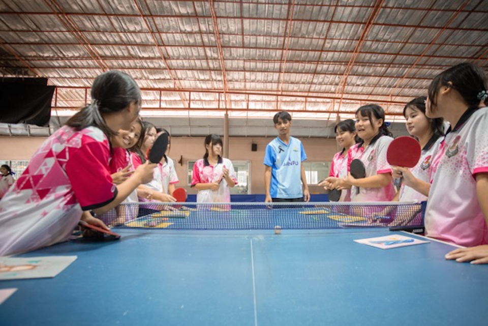 เสียงลูกปิงปองกระทบโต๊ะดังเป็นจังหวะสม่ำเสมอ ภายในอาคารเล็กๆ ของโรงเรียนปิยมิตรวิทยา อำเภอเชียงคำ จังหวัดพะเยา เปรียบเสมือนสัญญาณเริ่มต้นของโอกาสใหม่ ที่กำลังถูกส่งต่อให้กับเยาวชนกว่า 100 ชีวิต เด็กๆ เหล่านี้ บางคนไม่เคยจับไม้ปิงปองมาก่อน กว่า 30 คนที่เป็นเยาวชนกลุ่มชาติพันธุ์เพิ่งมีโอกาสฝึกเล่นอย่างจริงจัง และเกือบทุกคนที่ครั้งนี้จะได้ลองฝึกกับโค้ชมืออาชีพเป็นครั้งแรก