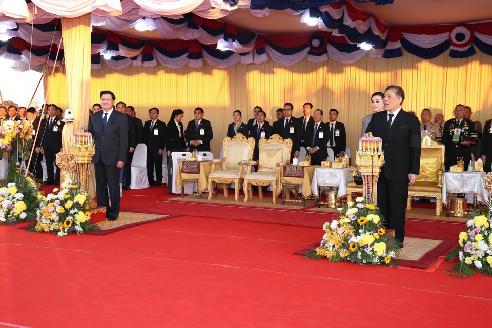 พระบาทสมเด็จพระเจ้าอยู่หัว และสมเด็จพระนางเจ้าฯ พระบรมราชินี เสด็จพระราชดำเนินไปทรงประกอบพิธีเปิดสะพานมิตรภาพไทย - ลาว แห่งที่ 5 (บึงกาฬ - บอลิคำไซ) อย่างเป็นทางการร่วมกับ ฯพณฯ นายทองลุน สีสุลิด ประธานประเทศแห่งสาธารณรัฐประชาธิปไตยประชาชนลาวและภริยา ณ บริเวณกลางสะพานมิตรภาพ ในโอกาสครบรอบ 75 ปี แห่งการสถาปนาความสัมพันธ์ทางการทูตระหว่างสองประเทศ