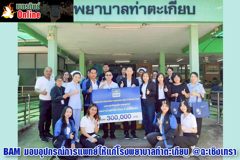 นายประสิทธิ์ เงินถาวรกุล ผู้อำนวยการฝ่ายพัฒนาสินทรัพย์ภาคตะวันออก พร้อมด้วยผู้บริหารและพนักงาน บริษัทบริหารสินทรัพย์ กรุงเทพพาณิชย์ จำกัด (มหาชน) หรือ BAM ร่วมมอบครุภัณฑ์ทางการแพทย์ รวมมูลค่า 300,000 บาท ให้กับโรงพยาบาลท่าตะเกียบ จังหวัดฉะเชิงเทรา โดยมี นายแพทย์เกริกภัทร ลิมปพยอม ผู้อำนวยการโรงพยาบาล เป็นผู้รับมอบ เพื่อสนับสนุนภารกิจของบุคลากรทางการแพทย์ด้านการรักษาพยาบาล และเสริมสร้างศักยภาพในการให้บริการประชาชนในพื้นที่ได้มากขึ้น BAM ตระหนักถึงความสำคัญของระบบสาธารณสุข โดยเฉพาะในพื้นที่ห่างไกลซึ่งยังคงขาดแคลนอุปกรณ์ทางการแพทย์ที่มีมาตรฐานและทันสมัย โดยอุปกรณ์การแพทย์ที่ส่งมอบในครั้งนี้ สามารถเพิ่มประสิทธิภาพ และความรวดเร็วในการให้บริการทางการแพทย์ รวมถึงยกระดับคุณภาพชีวิตของประชาชนในพื้นที่ให้ดียิ่งขึ้น สะท้อนถึงธุรกิจของ BAM ที่ดำเนินการควบคู่ไปกับความรับผิดชอบต่อสังคมอย่างต่อเนื่อง