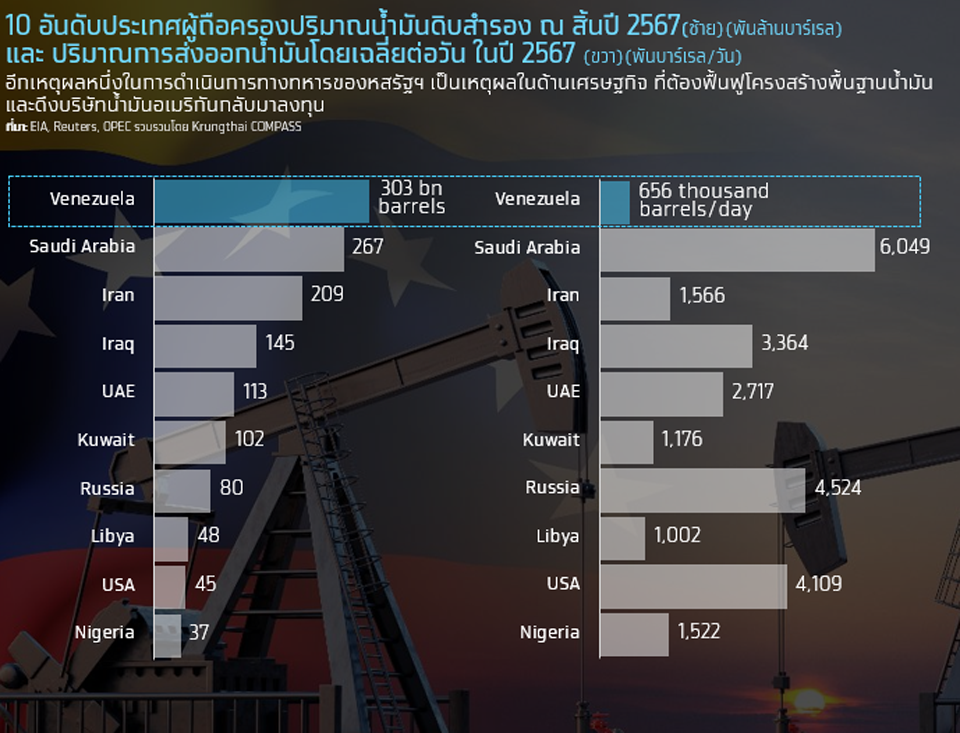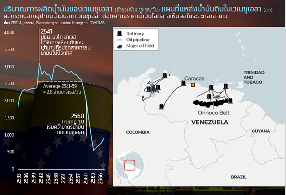 Krungthai COMPASS ประเมินว่า ผลกระทบต่อราคาพลังงานโลกจะเด่นชัดขึ้นในระยะกลาง-ยาว จากการเข้าไปมีบทบาทในการผลิตน้ำมันของสหรัฐฯ ในเวเนซุเอลา