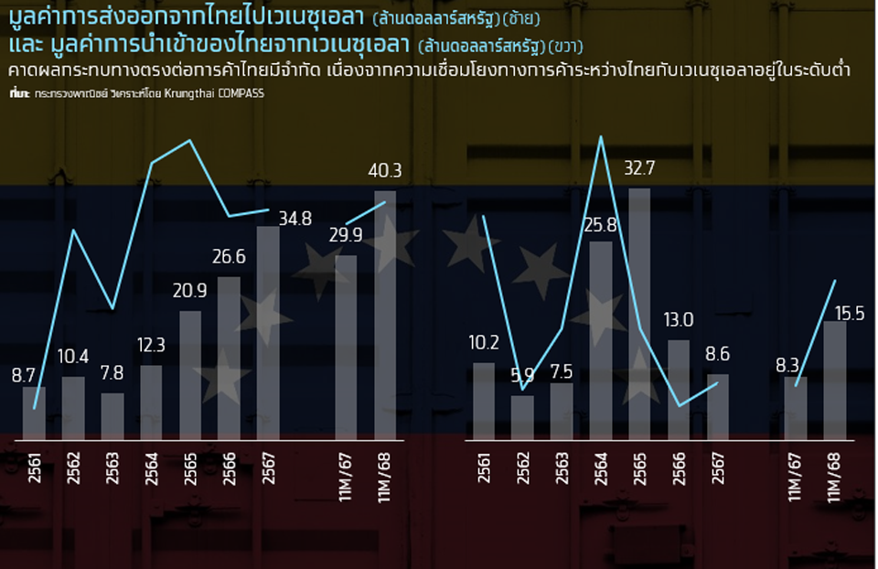 Krungthai COMPASS ประเมินว่า ผลกระทบทางตรงต่อเศรษฐกิจไทยจากเหตุการณ์ในเวเนซุเอลาผ่านช่องทางการค้าอยู่ในวงจำกัด เนื่องจากความเชื่อมโยงการค้าของทั้งสองประเทศอยู่ในระดับต่ำเมื่อเทียบกับคู่ค้าหลักในภูมิภาคละตินอเมริกา