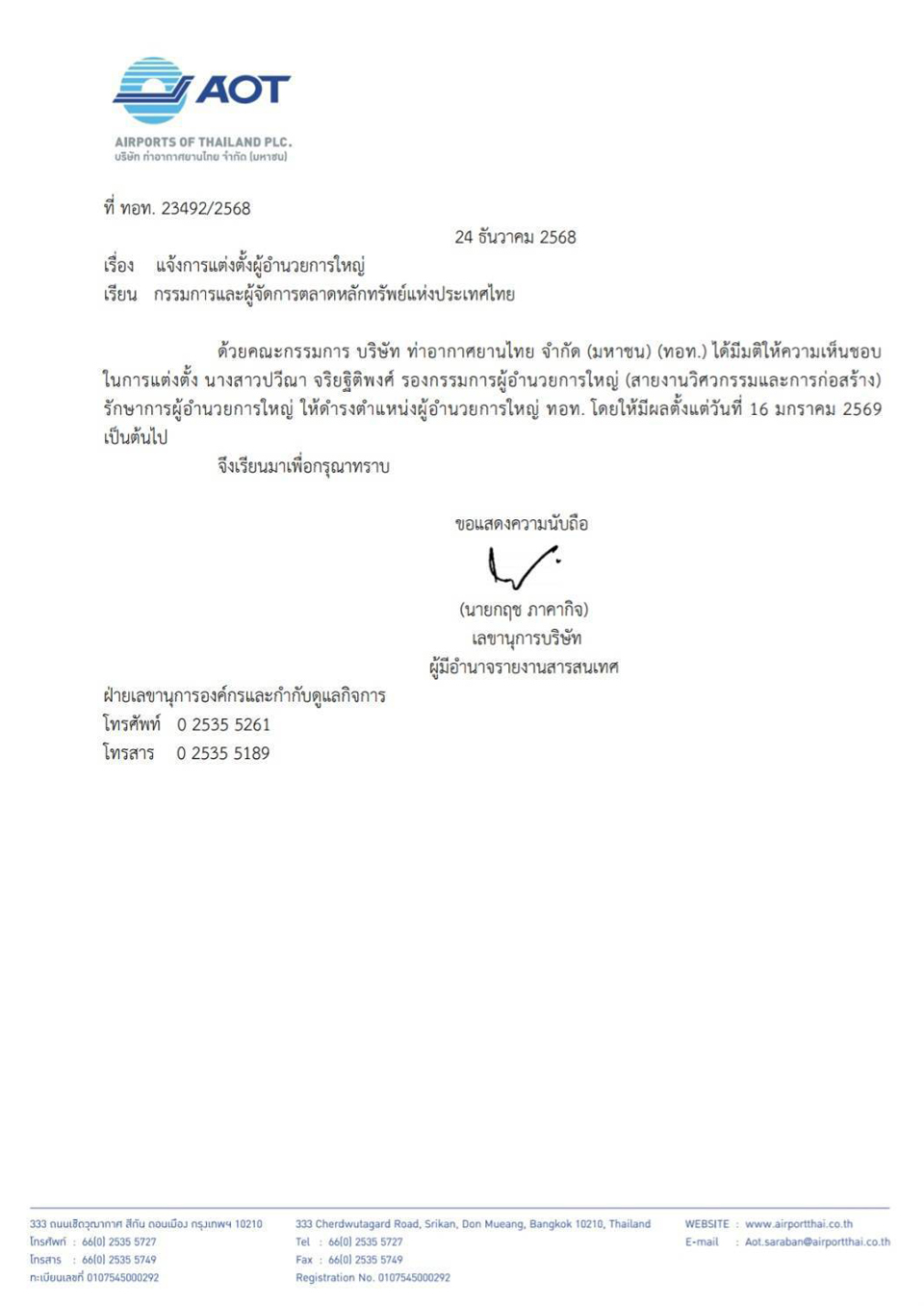 เส้นทางสู่เก้าอี้ผู้อำนวยการใหญ่บริษัทท่าอากาศยานไทย จำกัด (มหาชน) หรือ ทอท. ของ "น.ส.ปวีณา จริยฐิติพงศ์" ยังคงเต็มไปด้วยข้อครหาและข้อร้องเรียนจนถึงนาทีสุดท้าย แม้เมื่อวันที่ 24 ธันวาคม 2568 เลขานุการบริษัท ทอท. จะมีหนังสือแจ้งไปยังตลาดหลักทรัพย์แห่งประเทศไทย (ตลท.) ว่า ที่ประชุมคณะกรรมการ (บอร์ด)ทอท. มีมติเห็นชอบผลการสรรหาและแต่งตั้งนางสาวปวีณา เป็นผู้อำนวยการใหญ่แล้ว โดยให้เริ่มงานในตำแหน่งตั้งแต่วันที่ 16 มกราคม 2569 เป็นต้นไป