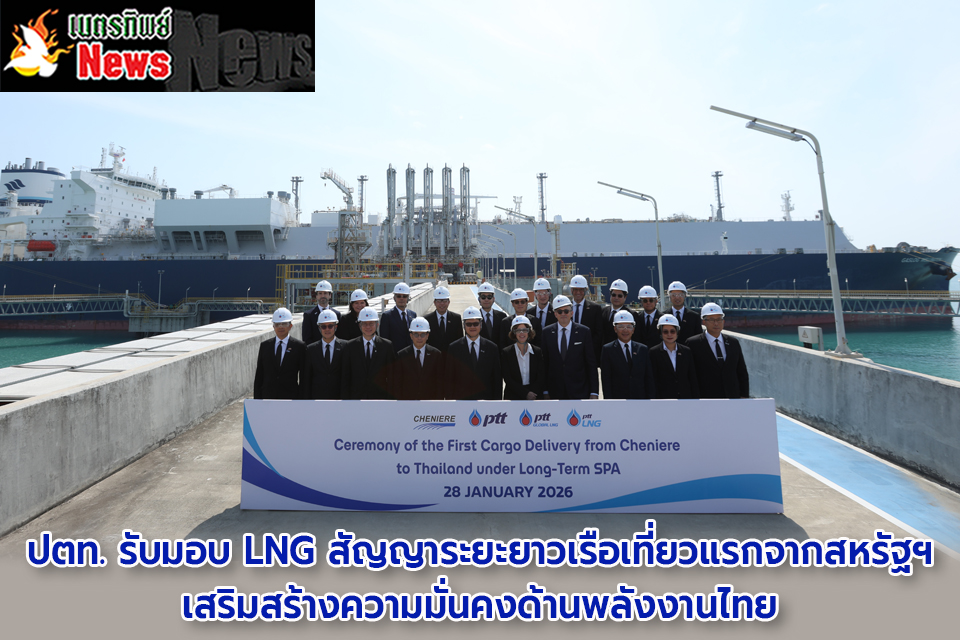 ผู้สื่อข่าวรายงานว่า เมื่อวันที่ 28 มกราคม 2569 บริษัท ปตท. จำกัด (มหาชน) (ปตท.) นำโดย นายประสงค์ อินทรหนองไผ่ รักษาการ ประธานเจ้าหน้าที่ปฏิบัติการกลุ่มธุรกิจปิโตรเลียมขั้นต้น ปตท. และ นายพงษ์พันธุ์ อมรวิวัฒน์ รองกรรมการผู้จัดการใหญ่หน่วยธุรกิจก๊าซธรรมชาติ ปตท. พร้อมด้วย Mr. Anatol Feygin, Chief Commercial Officer บริษัท Cheniere Energy Inc. ผู้ผลิตและส่งออกก๊าซธรรมชาติเหลว (LNG) รายใหญ่ที่สุดของสหรัฐฯ โดยได้รับเกียรติจาก Mr. Sean O’Neill เอกอัครราชทูตสหรัฐอเมริกาประจำประเทศไทย ร่วมพิธีรับมอบ LNG เที่ยวเรือปฐมฤกษ์จากสหรัฐอเมริกาสู่ประเทศไทยภายใต้สัญญาระยะยาว ปริมาณ 1 ล้านตันต่อปี เป็นระยะเวลา 15 ปี ซึ่งดำเนินการตามมติคณะกรรมการนโยบายพลังงานแห่งชาติ (กพช.) เมื่อวันที่ 12 กรกฎาคม 2565