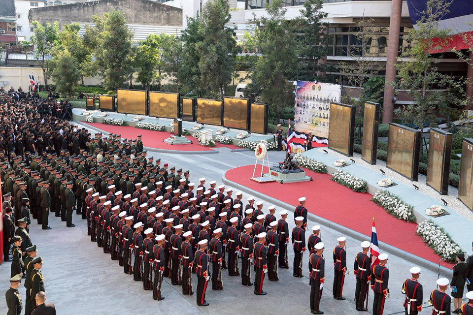 โดยพิธีสดุดีทหารผ่านศึก และกำลังพลผู้เสียชีวิตฯ ในครั้งนี้ ประกอบด้วยพิธีสำคัญ อาทิ การขับร้องเพลง “คนดีไม่มีวันตาย” โดยคุณรัดเกล้า อมรดิษฐ์, การกล่าวสดุดีโดยผู้แทน, การประดับแผ่นป้ายจารึกฯ และแสดงความเคารพด้วยท่าวันทยหัตถ์ โดยประธาน และผู้เข้าร่วมในพิธี, การแตรเดี่ยวเป่าเพลงเคารพ, การให้หมู่ปืนเล็ก ยิ่งสลุต, พิธีวางพวงมาลา, การบรรเลงเพลงพญาโศก ผ่านวงดุริยางค์ และการยืนร่วมกันร้องเพลง “ความฝันอันสูงสุด” เป็นต้น