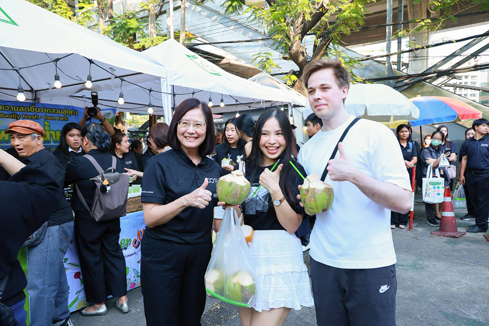 นางอัญชลี สุวจิตตานนท์ อธิบดีกรมส่งเสริมการเกษตร เปิดเผยว่า การจัดกิจกรรมในครั้งนี้มีเป้าหมายเพื่อช่วยเกษตรกรระบายผลผลิต เพิ่มช่องทางการจำหน่าย และสร้างรายได้ให้แก่เกษตรกรผู้ปลูกมะพร้าวน้ำหอม พร้อมเปิดโอกาสให้ผู้บริโภคได้เลือกซื้อมะพร้าวน้ำหอมสดจากสวน รวมถึงผลิตภัณฑ์แปรรูปจากมะพร้าวคุณภาพดีโดยตรงจากเกษตรกร เช่น วิสาหกิจชุมชนพิทักษ์สาคร หรือ สวนมะพร้าวเดี่ยวบ้านแพ้ว จ.สมุทรสาคร, วิสาหกิจชุมชนผลิตผลไม้ปลอดภัยบ้านรางสีหมอก จาก จ.ราชบุรี สวนมะพร้าวน้ำหอม ส.พรชัย Young Smart Farmer จาก จ.นครปฐม รวมถึงการจัดโปรโมชั่นพิเศษอย่างต่อเนื่อง จำหน่ายมะพร้าวน้ำหอมในราคาพิเศษ เพื่อจูงใจให้ประชาชนร่วมจับจ่ายใช้สอย ซึ่งได้รับความสนใจจากประชาชนและผู้เข้าร่วมงานเป็นจำนวนมาก ส่งผลให้มียอดจำหน่ายมะพร้าวน้ำหอมเฉลี่ยวันละกว่า 2 ตัน สะท้อนถึงความนิยมและความเชื่อมั่นของผู้บริโภคที่มีต่อมะพร้าวน้ำหอมไทย
