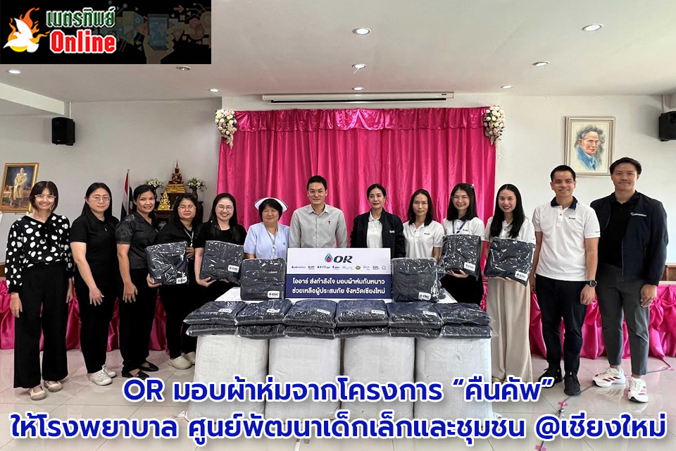 บริษัท ปตท. น้ำมันและการค้าปลีก จำกัด (มหาชน) (OR) มอบผ้าห่มที่ได้จากการรีไซเคิลแก้วพลาสติกในโครงการ “คืนคัพ” รวม 370 ผืน ให้แก่โรงพยาบาล ศูนย์พัฒนาเด็กเล็ก และกลุ่มผู้สูงอายุ ในจังหวัดเชียงใหม่ เพื่อสริมสร้างคุณภาพชีวิตให้กับประชาชนในพื้นที่