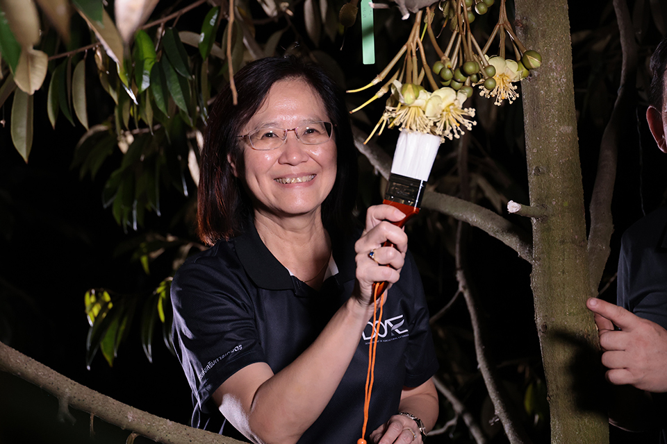 นางอัญชลี สุวจิตตานนท์ อธิบดีกรมส่งเสริมการเกษตร กล่าวว่า สถานการณ์ทุเรียนนนท์ ปัจจุบันมีพื้นที่ปลูกทุเรียนทั้งหมด 2,138.94 ไร่ เกษตรกร 1,277 ครัวเรือน ให้ผลผลิตรวมประมาณ 41.69 ตันต่อปี คิดเป็นมูลค่ากว่า 65 ล้านบาทต่อปี ซึ่งช่วงนี้ถือเป็นช่วงสำคัญสำหรับเกษตรกรชาวสวนทุเรียนนนท์ เนื่องจากทุเรียนกำลังเข้าสู่ช่วงระยะติดดอก มีผลต่อการกำหนดคุณภาพและผลผลิต เกษตรกรจึงมีการปัดดอกทุเรียน ซึ่งเป็นภูมิปัญญาดั้งเดิมของเกษตรกรชาวสวนทุเรียนนนท์ในการช่วยผสมเกสรทุเรียนด้วยมือ โดยใช้ไม้กวาดหรือพู่กันปัดเกสรตัวผู้ให้หล่นลงบนดอกเกสรตัวเมีย วิธีนี้จะทำให้การผสมเกสรสมบูรณ์มากขึ้น เปอร์เซ็นต์การติดผลสูงขึ้น ส่งผลให้รูปทรงของผลทุเรียนสวยงาม ไม่บิดเบี้ยว มีพูมาก เป็นลักษณะเฉพาะของทุเรียนคุณภาพ ซึ่งภายหลังจากผสมเกสรแล้ว เกษตรกรจะบันทึกวันผสมเกสรไว้ทุกช่อ ทุกต้น เพื่อความแม่นยำในการตัดทุเรียน โดยปีนี้ผลผลิตทุเรียนนนท์จะเริ่มออกจำหน่ายตั้งแต่เดือนเมษายน 2569 เป็นต้นไป ใช้เวลา 90 - 120 วัน จากวันที่ทำการผสมเกสร เกษตรกรก็จะได้ทุเรียนสุกพอดี