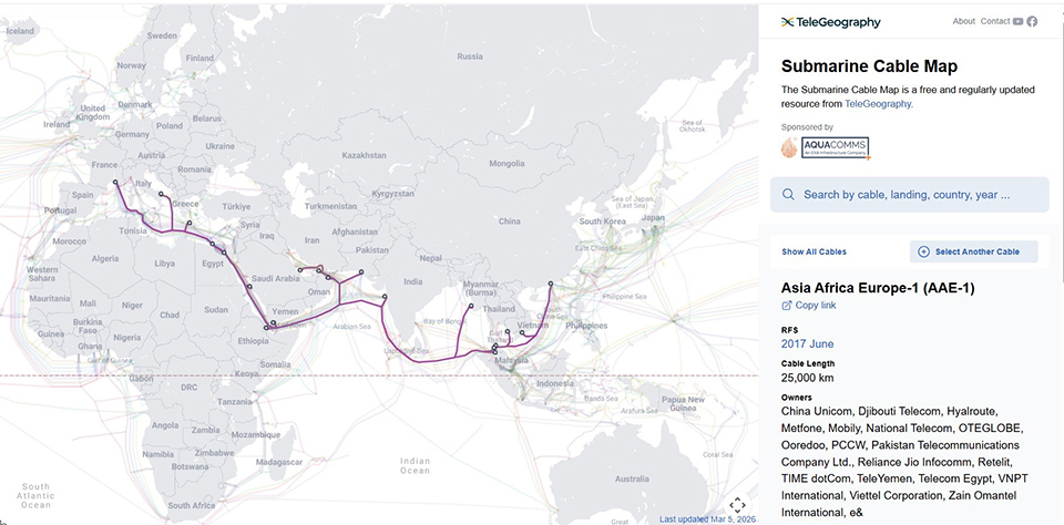 ปัจจุบันมีระบบเคเบิลเพียง 2 ระบบที่เชื่อมโยงผ่านพื้นที่เสี่ยงดังกล่าว คิดเป็นสัดส่วนทราฟฟิกอินเทอร์เน็ตที่ออกไปยังยุโรปน้อยกว่า 10% ของปริมาณการใช้งานทั้งหมดของประเทศไทย จึงคาดว่าจะส่งผลกระทบต่อผู้ใช้งานในวงจำกัด ที่สามารถควบคุมตามแผนสำรองได้