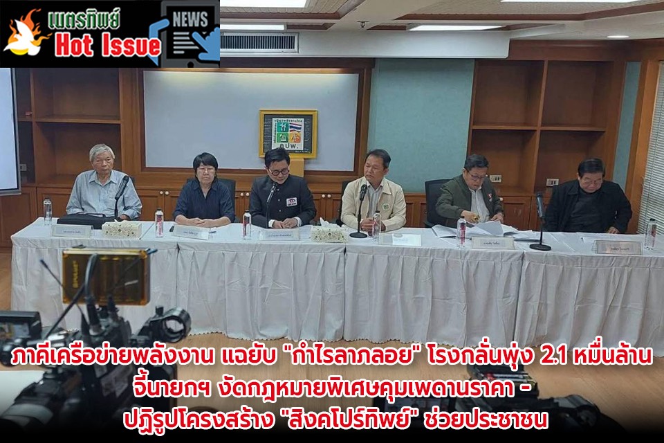 ภาคีเครือข่ายพลังงาน แฉยับ "กำไรลาภลอย" โรงกลั่นพุ่ง 2.1 หมื่นล้าน จี้นายกฯ งัดกฎหมายพิเศษคุมเพดานราคา-ปฏิรูปโครงสร้าง "สิงคโปร์ทิพย์" ช่วยประชาชน