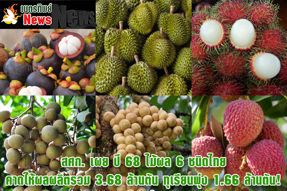 นางธัญธิตา บุญญมณีกุล รองเลขาธิการสำนักงานเศรษฐกิจการเกษตร (สศก.) กระทรวงเกษตรและสหกรณ์ เปิดเผยถึงสถานการณ์ไม้ผลที่สำคัญว่า ประเทศไทยมีผลไม้เศรษฐกิจมากมายหลากหลายชนิด โดยเฉพาะ ทุเรียน เงาะ มังคุด ลองกอง ลำไย และลิ้นจี่ ซึ่งจากข้อมูลพยากรณ์ปริมาณการผลิตไม้ผลทั้งประเทศ ในปี 2568 ของศูนย์สารสนเทศการเกษตร พบว่า ภาพรวม ปี 2568 คาดว่ามีปริมาณผลผลิตไม้ผลทั้ง 6 ชนิด (ทุเรียน เงาะ มังคุด ลองกอง ลำไย และลิ้นจี่ ข้อมูลพยากรณ์ ณ พฤศจิกายน 2567) รวมทั้งสิ้น 3.68 ล้านตัน เพิ่มขึ้นจากปี 2567 ที่มีจำนวนรวม 3.26 ล้านตัน (เพิ่มขึ้น 0.42 ล้านตัน หรือร้อยละ 12.72) เนื่องจากปี 2567 มีสภาพอากาศที่แปรปรวน อากาศร้อนแล้ง ซึ่งทำให้ในหลายพื้นที่มีปริมาณน้ำไม่เพียงพอในช่วงออกดอก และสลับกับมีฝนตกต่อเนื่องในช่วงติดผล ทำให้ดอกแห้งฝ่อ ฝนชะดอกร่วง บางส่วนแตกยอดอ่อนแทนการออกดอก และส่วนที่ติดผลแล้วสลัดผลอ่อนทิ้งเสียหายจำนวนมาก ส่งผลให้ผลผลิตออกสู่ตลาดน้อย ทำให้ไม้ผลมีเวลาพักต้นเพื่อสะสมอาหาร ต้นจึงสมบูรณ์