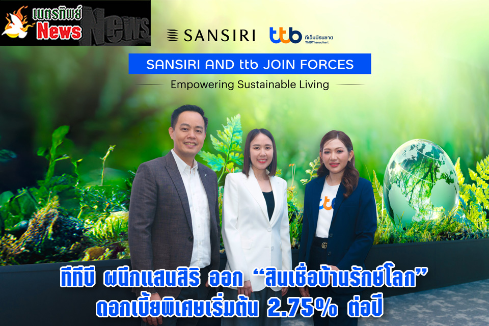 ทีทีบี ผนึกแสนสิริ ออก “สินเชื่อบ้านรักษ์โลก” ดอกเบี้ยพิเศษเริ่มต้น 2.75% ต่อปี